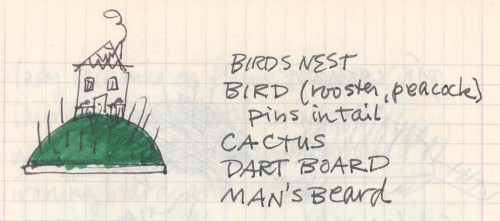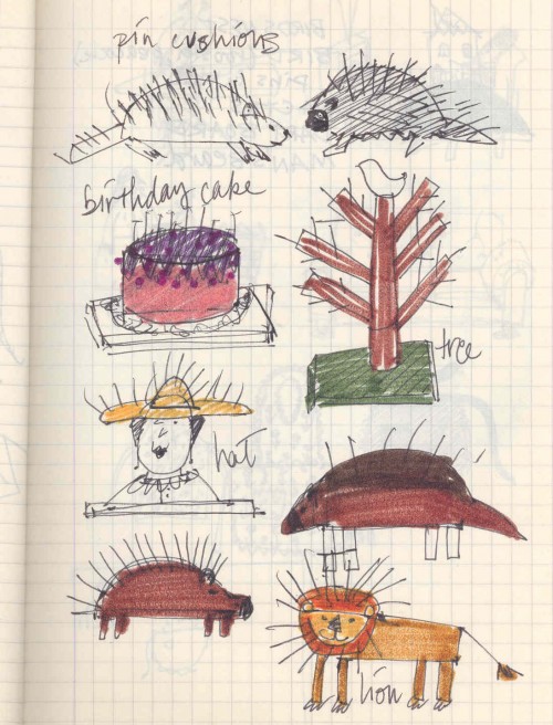 In a recent conversation, Mimi mentioned that she remembers seeing some pin cushions that I had made to sell in the coop store decades ago. Here are some pictures of a house and lion I made in 1980, along with some pages from my sketchbook of that time. Now, with her Tiny World pin cushions in tea cups, she has taken the concept and made it her own, producing new beautiful designs at an incredible rate. I agree with Mimi, who says, ” I am a believer that there is nothing new in the world and we are all inspired by each other.”