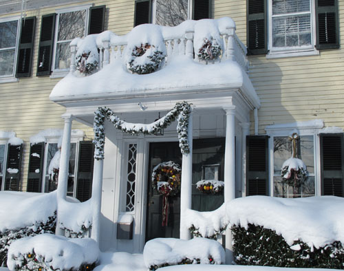 We drove around town this morning, marveling at the snowy scenery, which made everything look like a Christmas card. Here are some photos of Falmouth and Woods Hole.