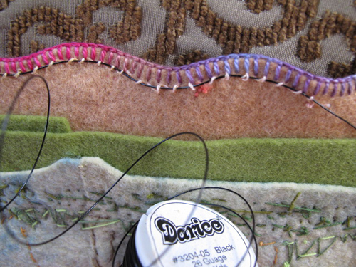 That is wonderful idea to use a wire to create a ruffled edge. Your meticulous sewing is beautiful. Thanks for sharing the process with us. Can’t wait to see the finished book!