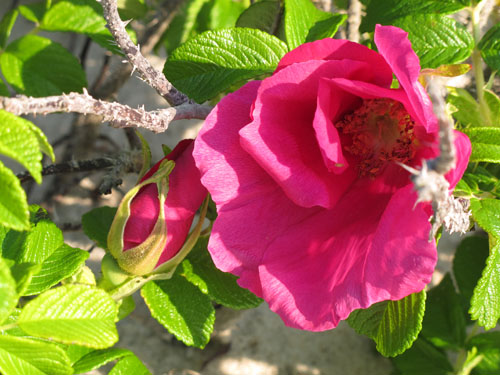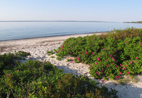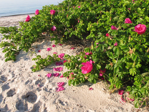 The Rosa Rugosa are just starting to bloom along the bike path, which travels along the shore on the old train track right of way. Trains used to go from New York and Boston to the dock in Woods Hole, where people could board the ferry to Martha’s Vineyard.