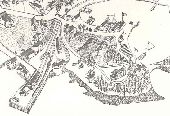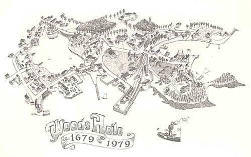 Here’s a drawing I made for Woods Hole’s tricentennial t-shirt in 1979, which shows the train on the ferry pier. It’s based on a map from the 1800’s.