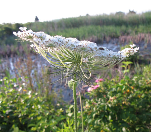 Young Queen Anne’s Lace looks like an umbrella forced inside out by the wind.