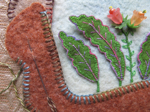 Aw those pigs are adorable, and I love the sun – so cheery! The use of wood is also really amazing. You must be the most expert blanket stitcher in America by now! The borders add so much to the picture. Can’t wait to get my hands on this book!