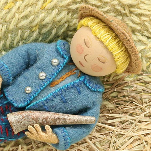 Little Boy Blue’s hat is made from thread wrapped wire and his horn is a cactus thorn.