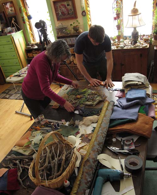 I’m also working with some local filmmakers, the husband and wife team of Daniel Cojanu and Elise Hugus. I’ve hired them to make a 3 to 5 minute film about my artwork, with Rabbitat as the subject. Here they are, filming and recording the interview portion in my studio. See the finished film here.