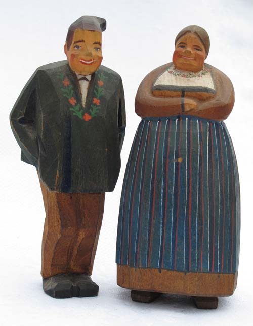 This couple is wunderbar! The way they are carved reminds me of some German carved Santas that I have. I know this type of carving is indigenous to a certain region in Germany, but unfortunately I don’t remember the name of the region. If I can find it, I’ll let you know, Salley.
