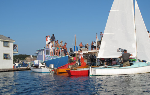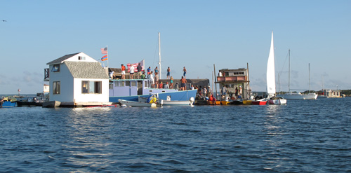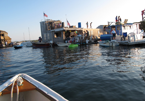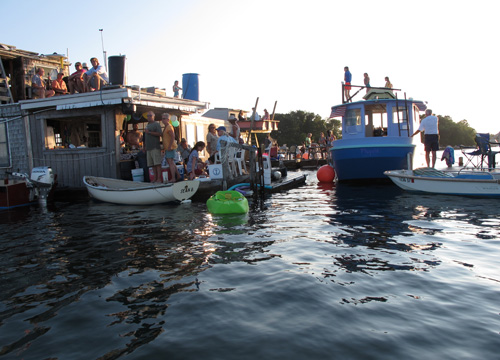 Guests either rowed, sailed or motored to the party, tying up their boats to one of the rafts.