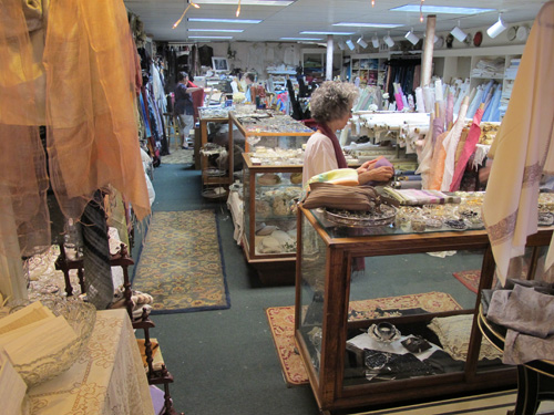 What a wonderful place. I visited there when I went to see your show at the museum. I didn’t take pictures of the shop but mentioned it on my blog. I do wish now I’d bought fabric for a doll I’m making. I only bought the tiny lace. I’m thinking on one hand it is a good thing that I don’t live nearby but I wish I did on the other hand. It is a beautiful town and this shop is mesmerizing inside. thanks for sharing the pictures.