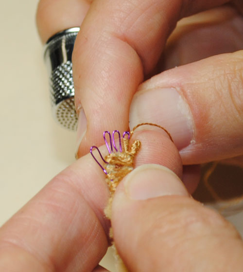Lolly took a closeup photo of me sewing a little hand. It’ll appear alongside my Horn Book Award speech, which will be printed in the January/February issue. I don’t have a picture of the thread wrapping process in such small-scale, so its nice to be able to show it here.