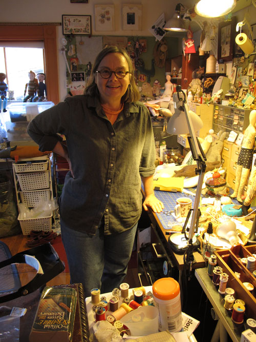 2. Wonderful to see her and her studio. As a art doll creator I love to see the blogs of other doll makers. And ohhh, I so want a collection of your little Wee Folk Pincushions in tea cups. It’s great to get to see through your eyes.