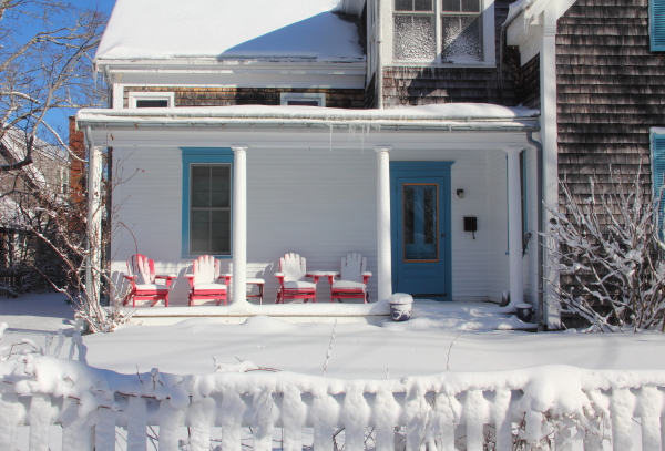 If you’ve been following this blog for a while, you will have noticed that I have a thing for doorways. Some of these Woods Hole houses have been shown before, but in other seasons. I took these photos after last weekend’s snow storm. The summer houses were undisturbed, but the year ’round ones had shoveled paths.  Enjoy!