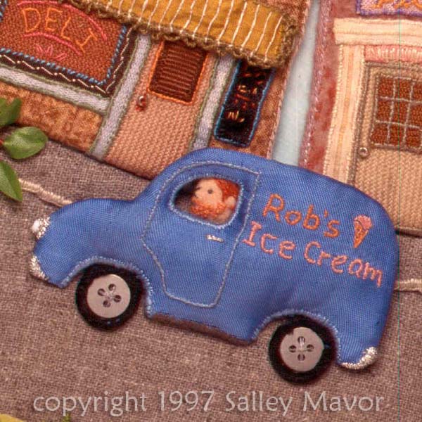 16 years later and I’m still making ice cream trucks. This 2″ embroidered one is from a baby quilt I’m in the process of making for a friend. Stay tuned for more quilt images!