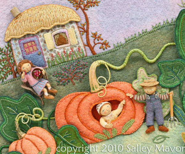 2. I have a question. Salley, you showed us how in Wee Folks how to make dolls and leaves and other things. Then on your website you showed us how you made your birds. I’m working on an Iroquois story from the Seneca people in upstate NY about strawberries (I’m half Mohawk) and I started to use the pieces I’ve made following the Wee Folk book as well as pieces that I’ve dreamed up from my own mind and other patterns I’ve gotten from other embroidery places. My question is about your post a week or so ago about the people stealing from other artists. I don’t want to do that; my little dolls are dressed in “traditional” outfits from the Iroquois (modern day) and since I love the trees I’ve used those. Am I stealing from you to make these pictures? If so I will stop and I will find another way. Please let me know. Thanks and many hugs for all your wonderful work. helen