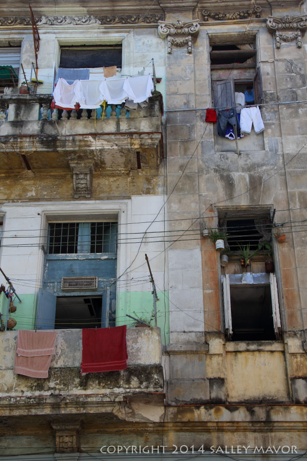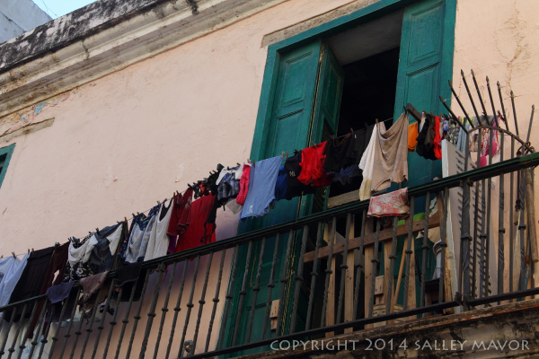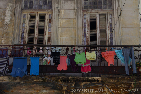 Cuba: laundry Posted on April 9, 2014 by Salley Mavor In Havana, laundry hung from every balcony like flags of humanity. Share this:Share Click to share on Facebook (Opens in new window) Facebook Click to email a link to a friend (Opens in new window) Email Click to print (Opens in new window) Print Like Loading... Related
