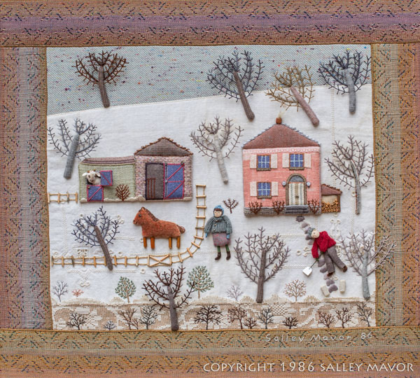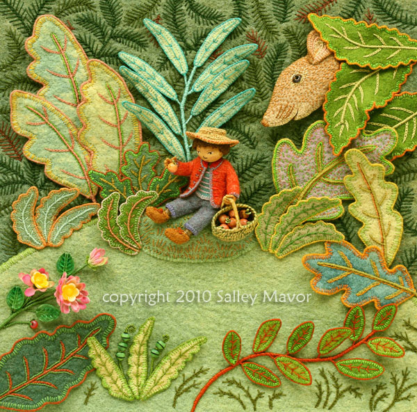 The exhibit includes 19 fabric relief pieces, made from 1985 to the present. Click the title links to see images of the artwork. The only one without a link is “A Wee Gathering”, which is a case full of sample dolls from my upcoming how-to book, Felt Wee Folk: New Adventures. Since the book isn’t yet published (spring 2015), you’ll have to come see the wee folk in person!