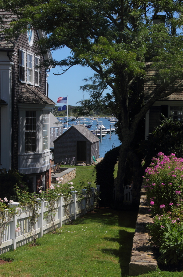 The island of Martha’s Vineyard is just a few miles off the coast of Woods Hole, but it seems far away, like a separate, insular territory. People are often surprised by its size, 30 miles long, with a half-dozen towns. We like to drive our motor boat over at least once a summer. This time we went to Edgartown, which usually has moorings available for a few hours and the added bonus of a public launch service that takes you to and from your boat in the harbor.