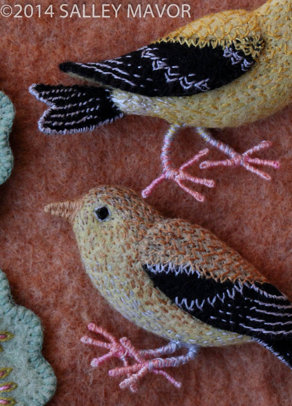 About halfway through the process, when I’d already made the birds, I realized that this would be a good project to show how I work. You’d think that this would be automatic by now, but it’s always a challenge to stop and document while you’re engrossed in the middle of something. I took a few photos and also asked Rob to do some filming. You can see high action close-ups of my hand stitching, winding and arranging parts in the video below.