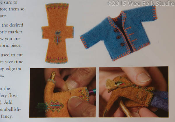 Many of you have said that embellishing and stitching together little outfits is your favorite part of making the dolls from Felt Wee Folk. Women of a certain age have fond memories of sewing felt clothing for their Troll dolls during their first invasion in the 60’s. The later version of wide eyed Troll dolls where much cuter and not as appealing, in my opinion. I can still remember sewing snaps on my Troll clothes and trying to figure out whether to make the stitches jump from hole to hole or go outside the snap. I decided that it doesn’t matter which is the “right” way and tried both. Decades later, I’m still figuring out new ways to make and clothe little dolls and my early experience with making Troll clothes may have been what spurred me into writing how-to books.