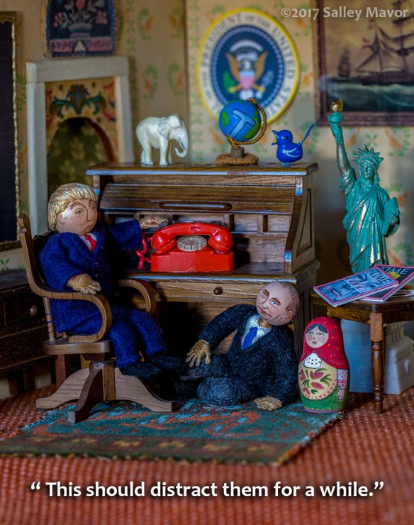The Wee Folk Players (They’re a Stitch) formed after the 2016 election and have performed a string of episodes in the American Drama Series. To keep up with new posts, subscribe to this blog (top right column on the home page). For a wide ranging look at new and old material from my studio, please follow along on Instagram and Facebook. And to find out about Salley Mavor’s post-election satire, please read her this interview.