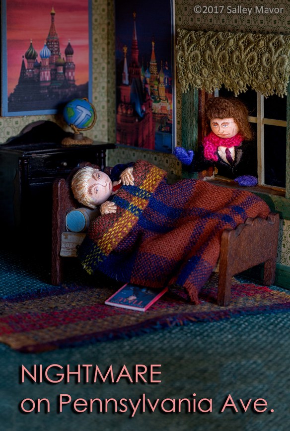I love the tiny wizened hands, was that on purpose? Of course! And Putin’s face and color of eyes is perfect. You nailed it, Sally!