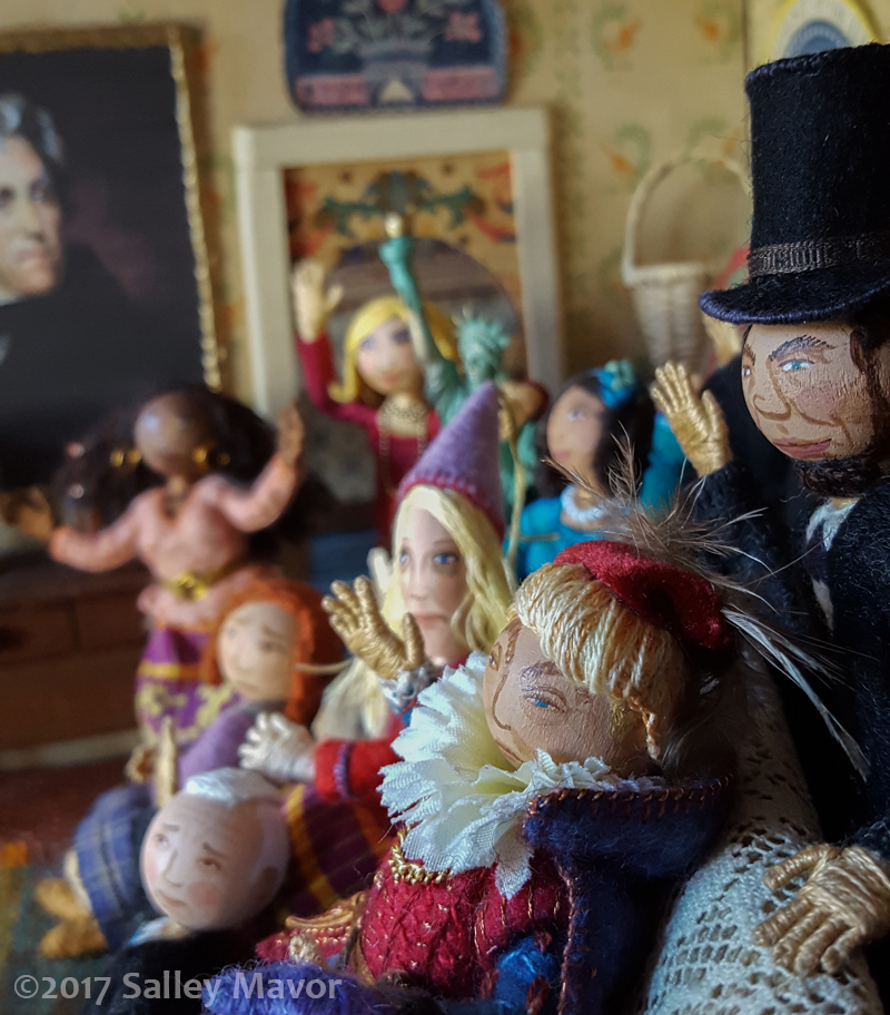 The Wee Folk Players (They’re a Stitch) formed after the 2016 election and have produced a string of episodes in the American Drama Series. To keep up with new posts, subscribe to this blog (top right column on the home page). For a wide ranging look at new and old material from my studio, please follow along on Instagram and Facebook. And to find out about Salley Mavor’s post-election satire, please read this interview.