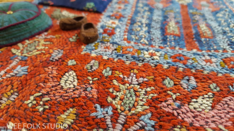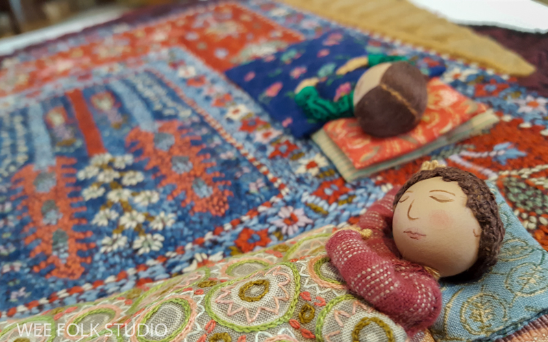 Children, bedding, slippers and an ottoman take center stage in this 2nd part of the series about making an illustration of an a scene set in Afghanistan for my new picture book. To see how the carpet was made, click here for Part 1. The story about children’s sleeping places in different cultures around the world was written by Rebecca Bond. It will be published by Houghton Mifflin Harcourt in 2020.