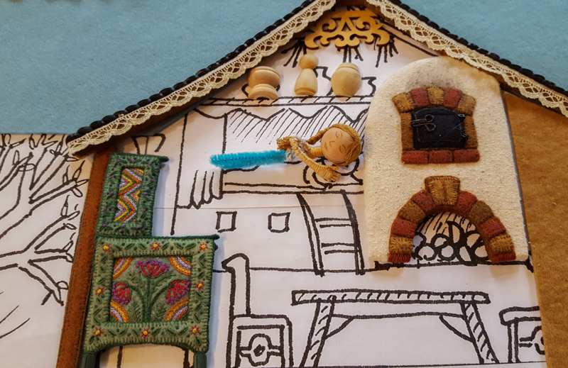 To make frames for the side panels, I cut out pieces of felt and sewed a blanket stitch around the edges.