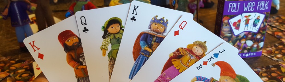 I am excited to announce a new set of Felt Wee Folk playing cards! Aren’t they a perfect way for all ages to enjoy the wee folk? C&T Publishing has just added the cards to their product line, which also includes the 1st and 2nd editions of my how-to book Felt Wee Folk. After selling out earlier this week, they’ve been restocked in my Etsy Shop. I also want to take this opportunity to let you know that I’ve added some doll-making supplies to the shop – wool fleece fairy hair, flower petal skirts and wings.