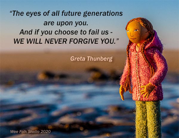 Two weeks ago, I announced my new project featuring climate change activist Greta Thunberg, which you can see here. Since then, I’ve heard from many of you who would like to purchase cards with the wee folk version of Greta and her quote. I am happy to say that note cards, postcards and prints are now available in my shop. Profits from sales will go to support climate science research at the Woods Hole Research Center.