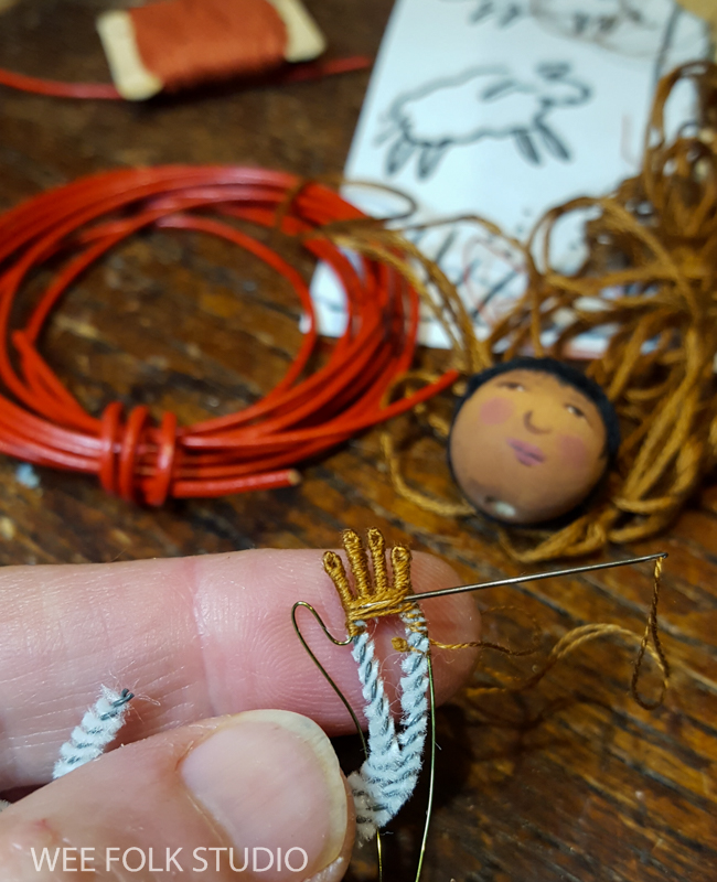 To keep the felt straight and firm, I edged the pieces with wire, which is stitched over so you don’t see the shiny metal.