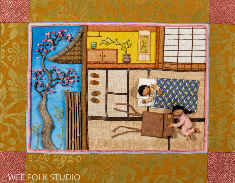 Currently, the Bedtime Stitches exhibition is booked at 7 museums through May 2023 and more could be added. I wish I could wave a magic and send it all over the country, but I’m limited by how many years I want to keep the collection in circulation, as well as reliant on the interest and financial support of museums and curators. If you want the show to travel close to where you live, please talk it up with a museum in your area. Enthusiasm from local members of the community can make a difference. That’s how the Pacific Northwest Quilt & Fiber Arts Museum in La Conner, WA heard about the opportunity and booked the show for 2023. Museums are welcome to contact me (salley at weefolkstudio.com) for information about hosting the exhibit.
