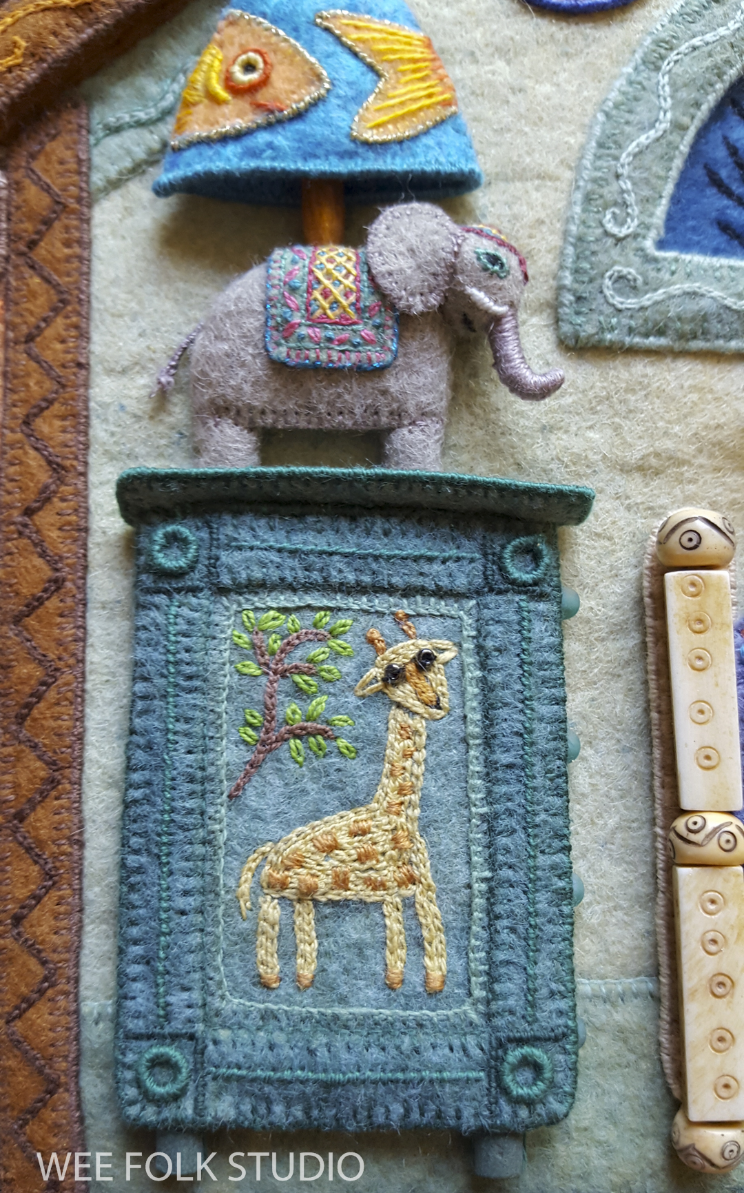 For this scene, I rendered the giraffe in a different form, as a chain stitched image “painted” on the side of a chest of drawers.