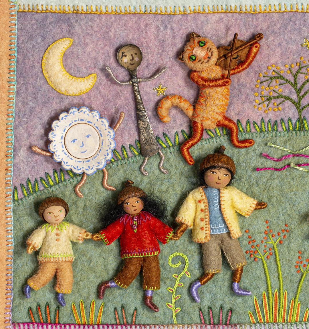 This part of the process was more free form and reminded me of the simple embroidered foliage I made in the illustrations for Hey, Diddle, Diddle.