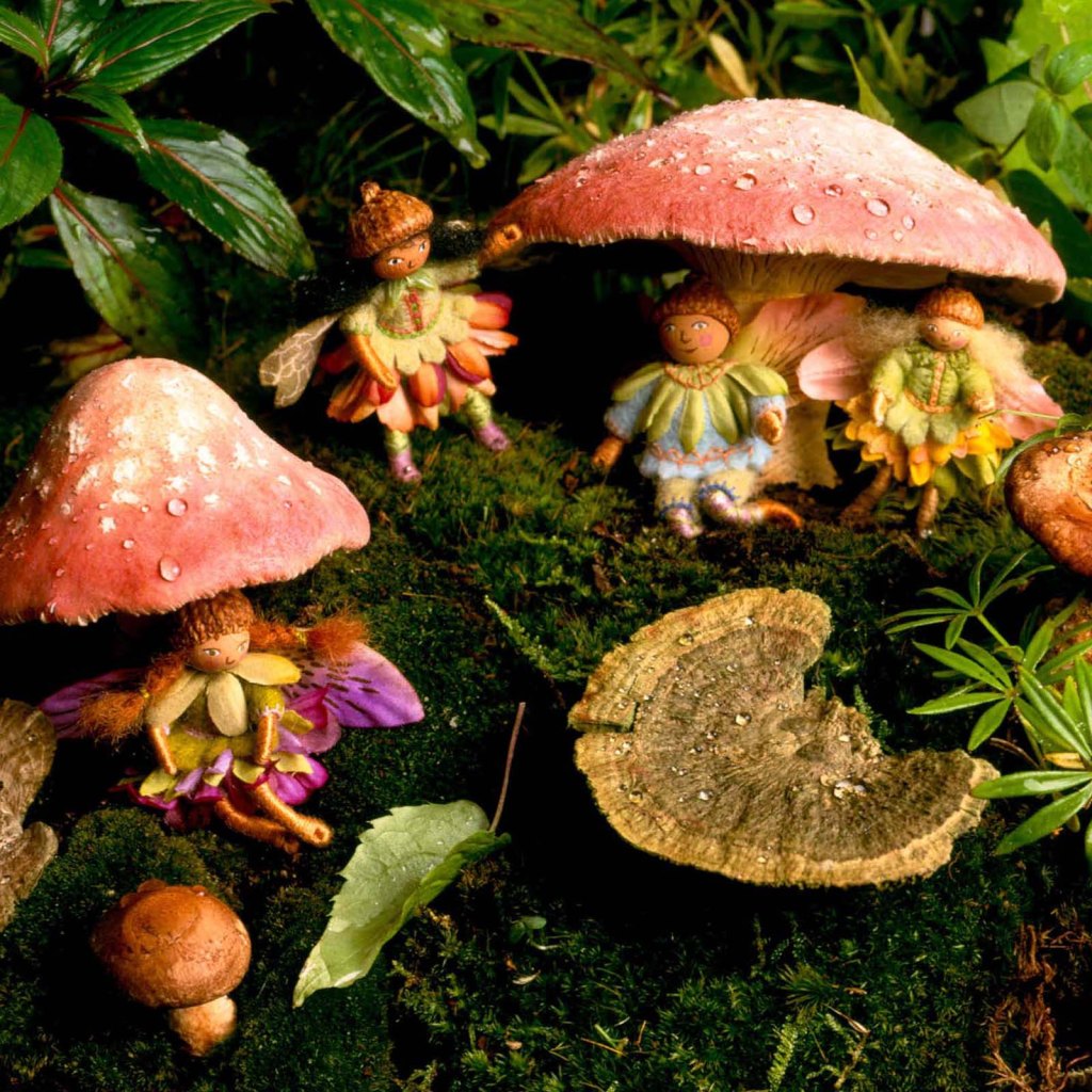 In this scene from 2009, I used both real mushrooms from the supermarket and more fanciful ones that I made with polymer clay and painted kid leather.