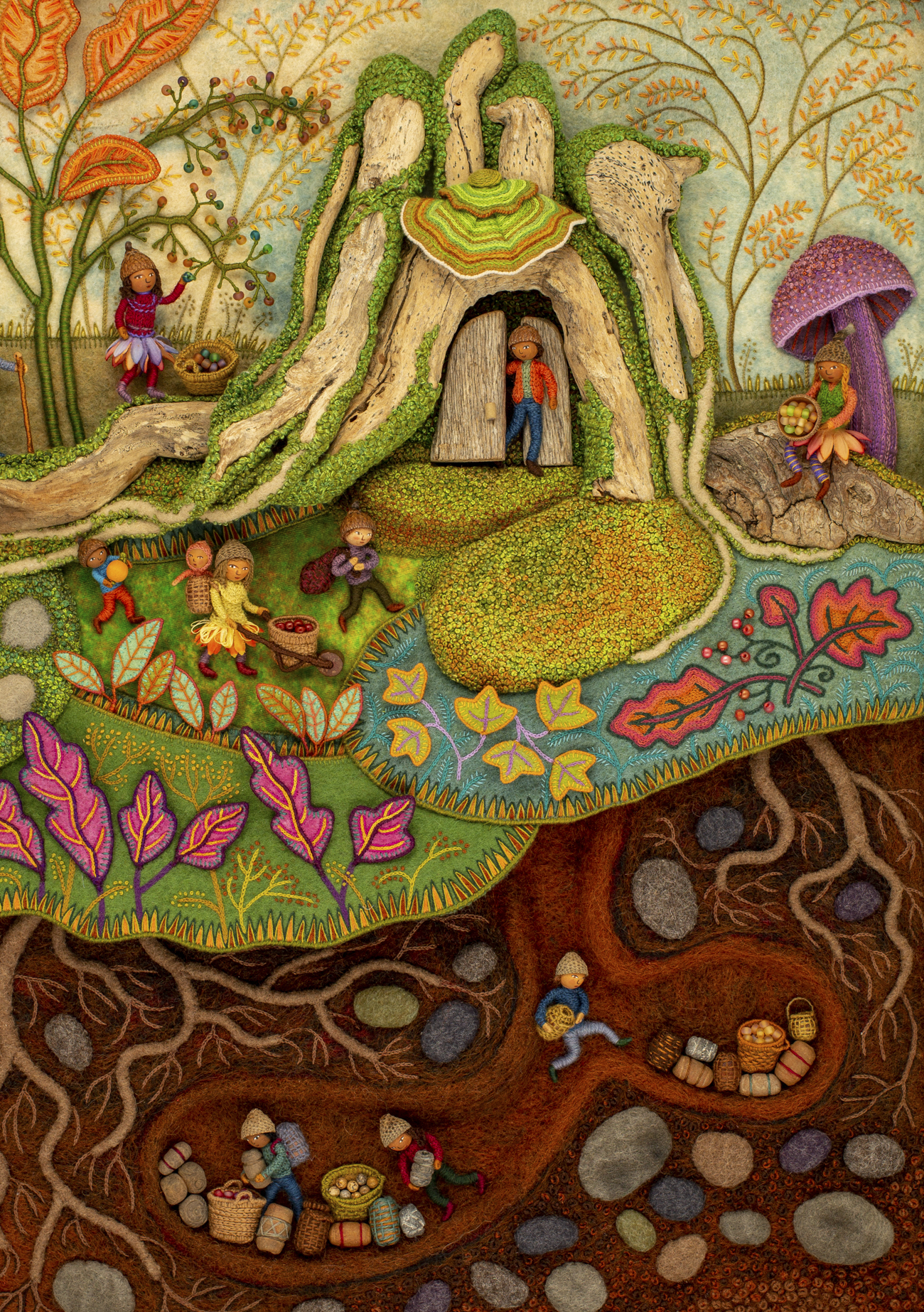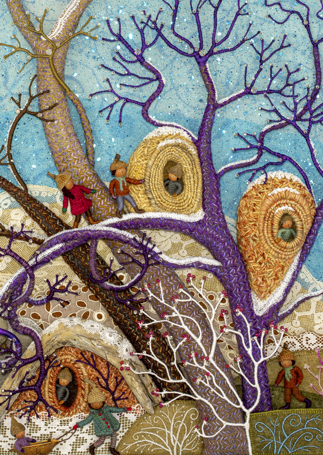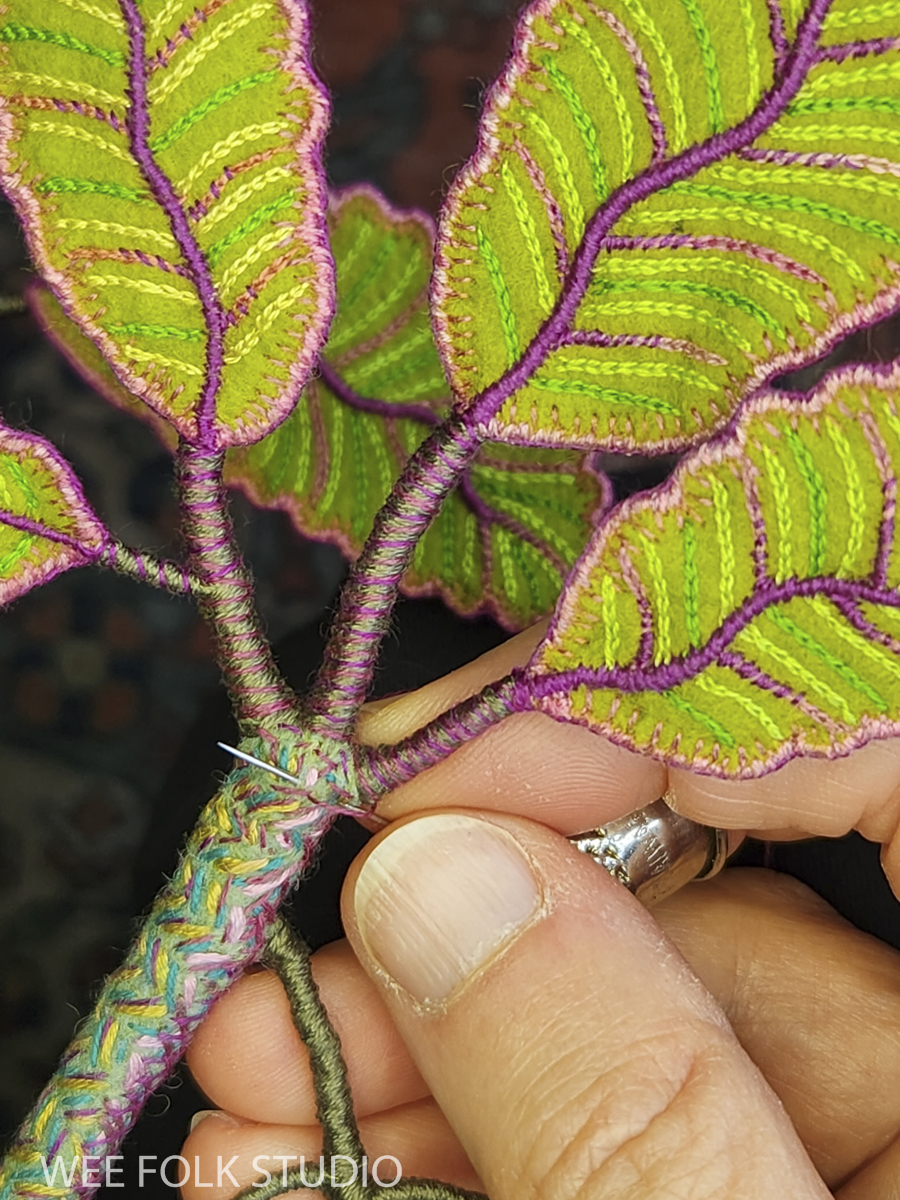 I’ll leave with this little video of the tree houses in the summer scene. I just couldn’t resist playing! You may recognize the character peeking out as a member of the Woodland Family in my how-to book, Felt Wee Folk: New Adventures. I’ll eventually make all new wee folk dolls to inhabit the landscape.
