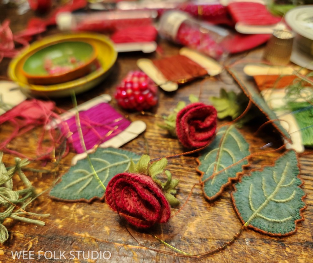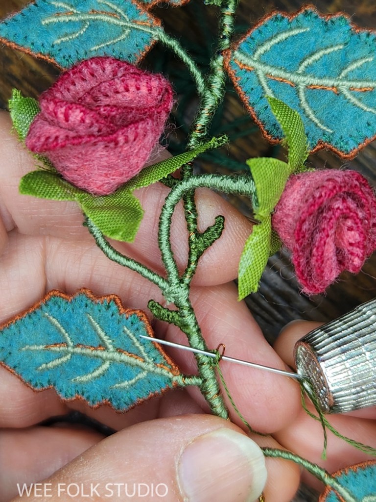 Here’s a Stitch Minute video of making a felt rose. It’s an embellished version of a rose that Mimi Kirchner shared years ago on her blog.