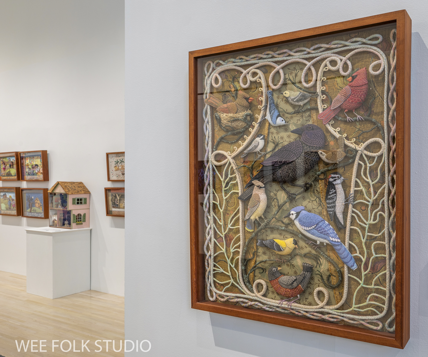 On view are are over 75 shadow boxes and other objects, including original picture book illustrations spanning my career. The show contains BEDTIME STITCHES, the touring exhibition of artwork for my most recent book, MY BED: Enchanting Ways to Fall Asleep around the World. Also on display are a wall full of wee folk dolls and stand alone pieces that explore a range of social narratives, from the everyday to topical subjects.