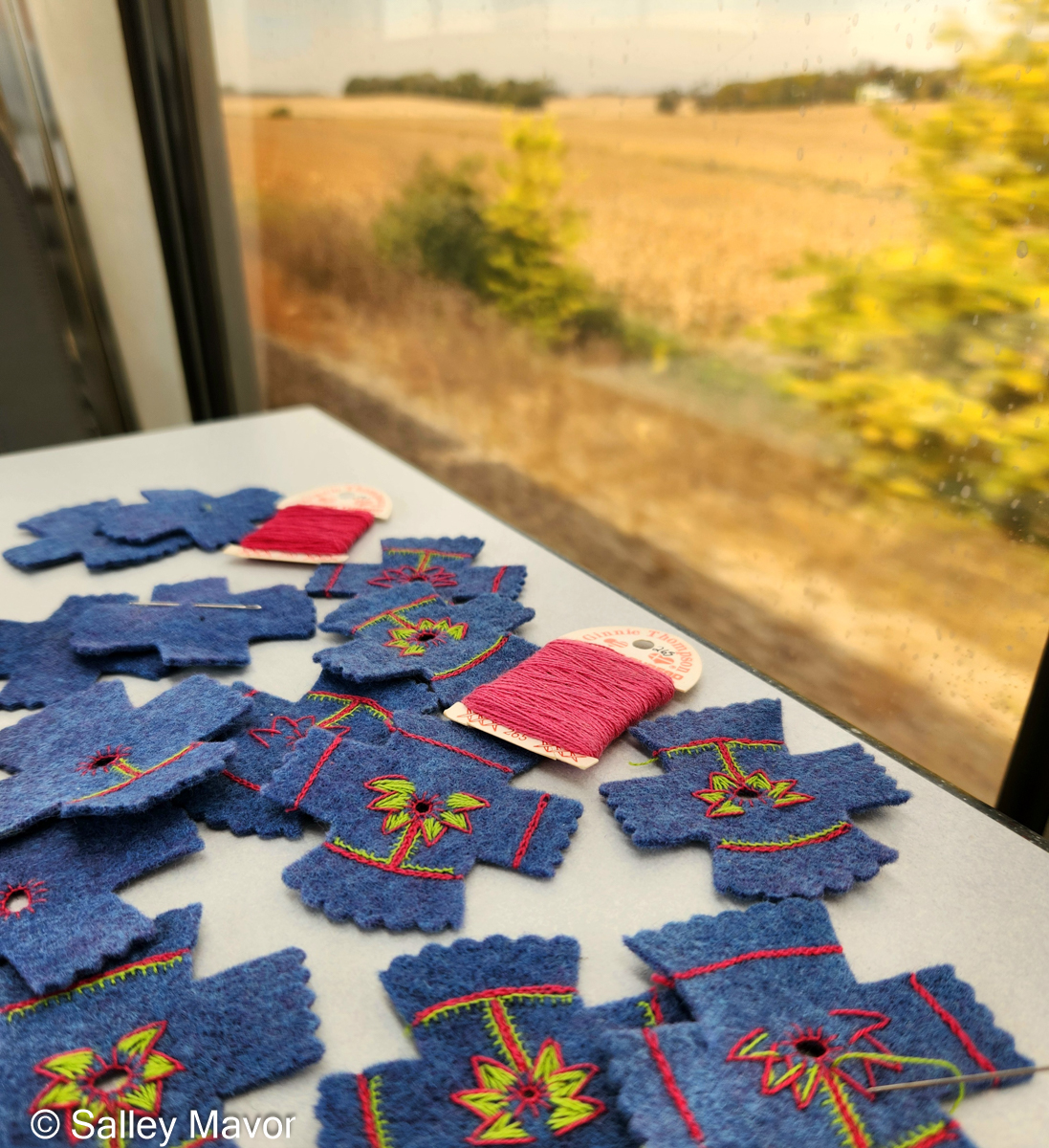 We traveled across the country by Amtrak, from Boston to Portland, OR and back home again. Besides gazing out of the train window at midwestern farms and plains for days, I wrapped pipe cleaners and stitched felt peplum jackets for 2 sets of ltd. edition fairies. I’ve made a lot of progress, but there’s still more work to do before the fairies are all dressed, coiffed and winged! They will be sold in my shop on a first come, first served basis. Sorry, no pre-orders. I’ll announce their listing date on this blog, Facebook, and Instagram when they’re closer to completion.