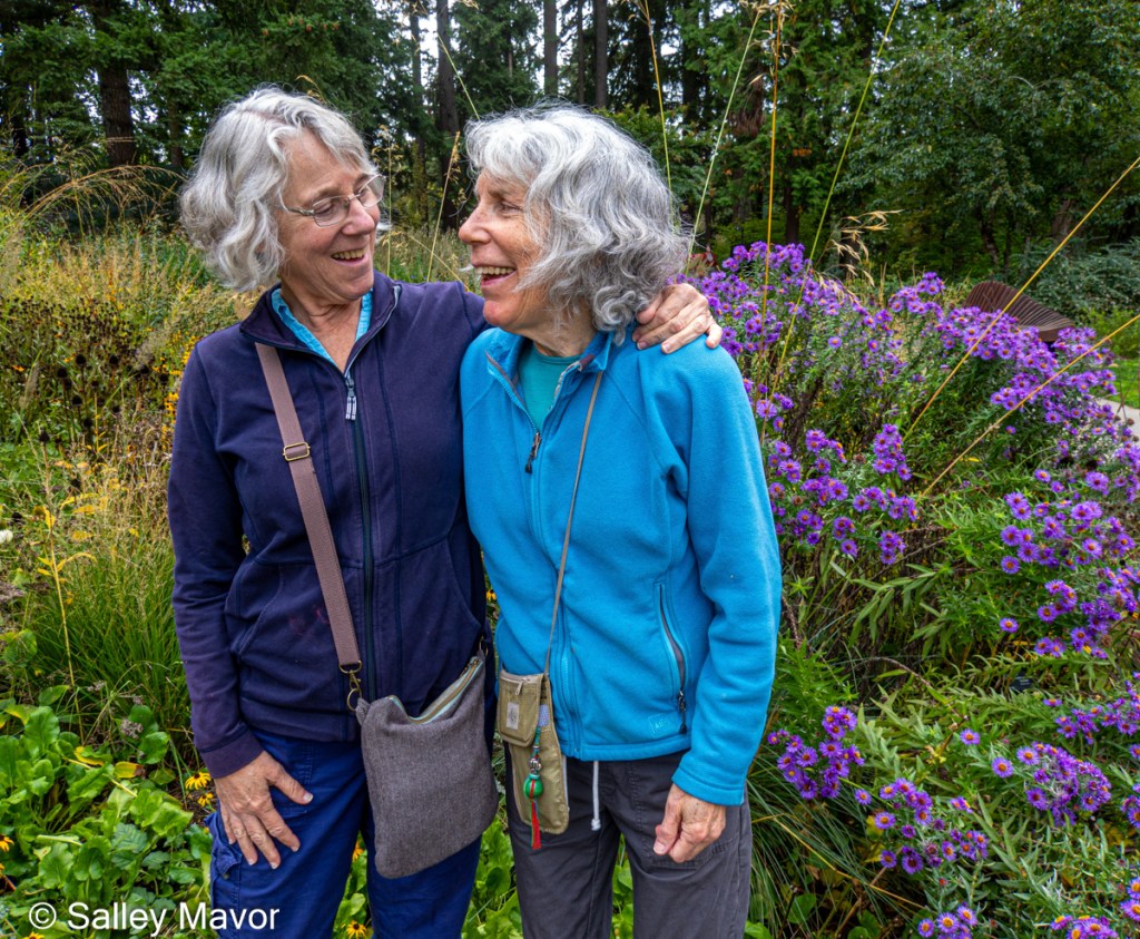 In October, Rob and I traveled by train to Portland, OR to see my sister, Anne Mavor, who is also an artist. Here we are at the Leach Botanical Garden. Every year, we look more and more alike. Not only do we have the same hair and face genes, we have a similar color and fashion sense, from our zippered jackets down to our totally practical over-the-shoulder purses.