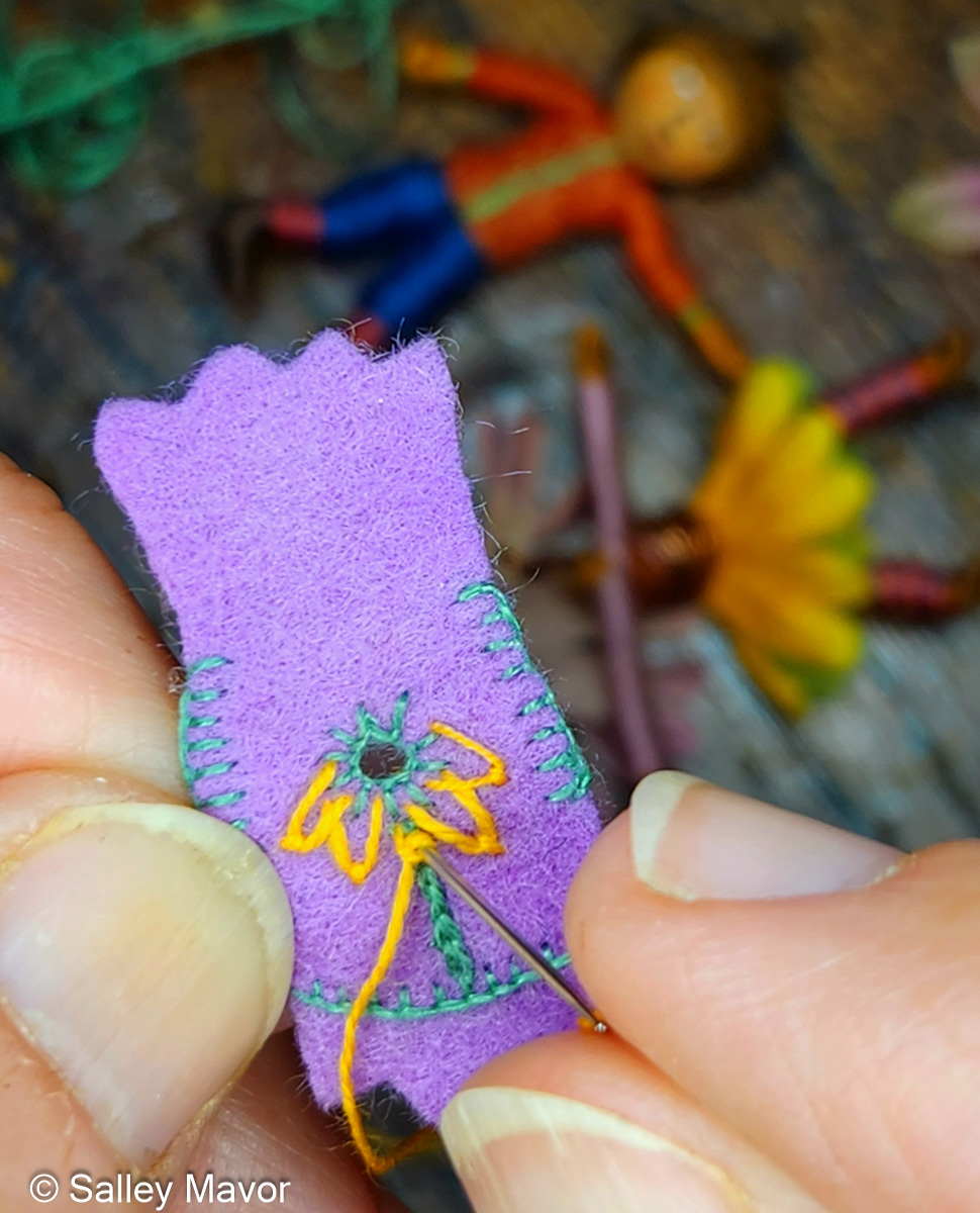 For some of their outfits, I embellished wool felt using cotton embroidery floss.