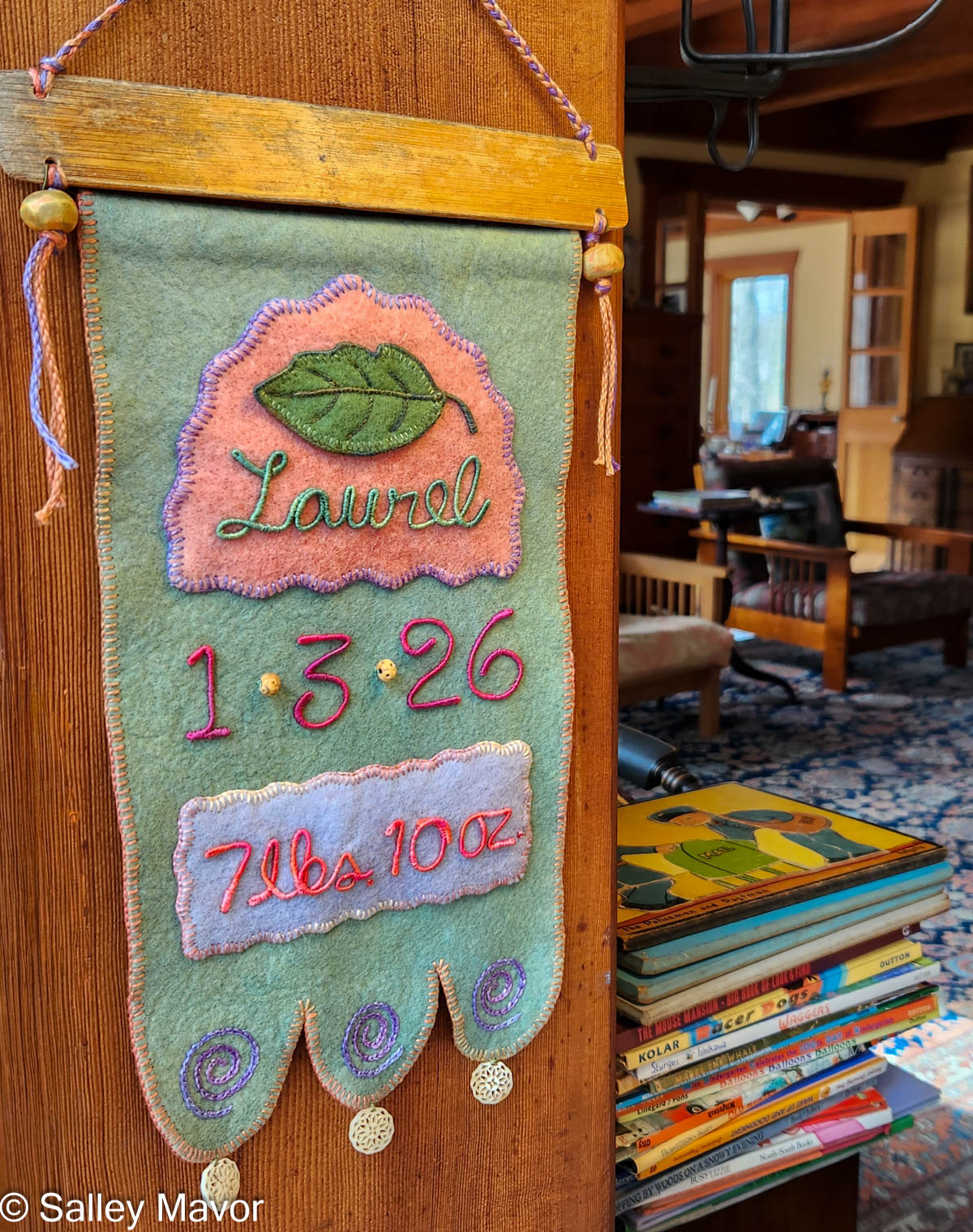 Three days into the new year, our good friends welcomed a baby girl into the world. I couldn’t wait to make a banner for little Laurel. With a nature inspired name like that, it would have to feature a laurel leaf!