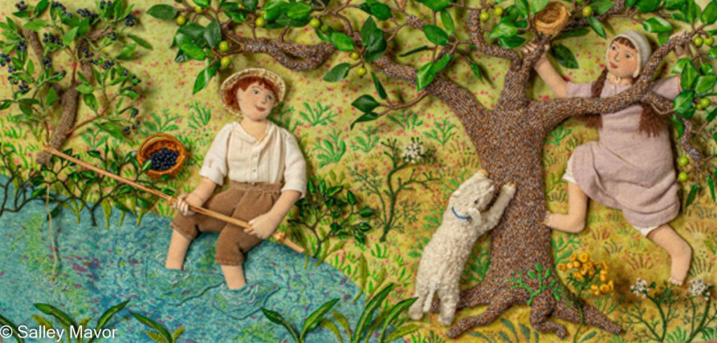 The summer after graduating from RISD in 1978, I went on a pilgrimage to London to see the Victoria and Albert Museum’s collection of stumpwork in person. Considering the impact that this historical artform has had on the course of my career, I will forever be grateful to the English women and girls of the 1600s who created these unique and charming pieces. Because these works were treasured and safeguarded for more than three hundred years, we are able to be inspired by their beauty and ingenuity today.