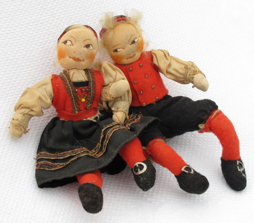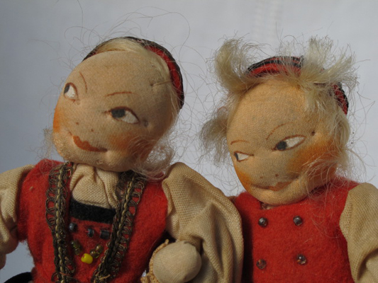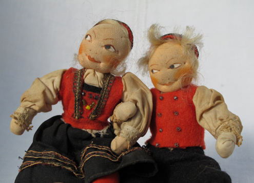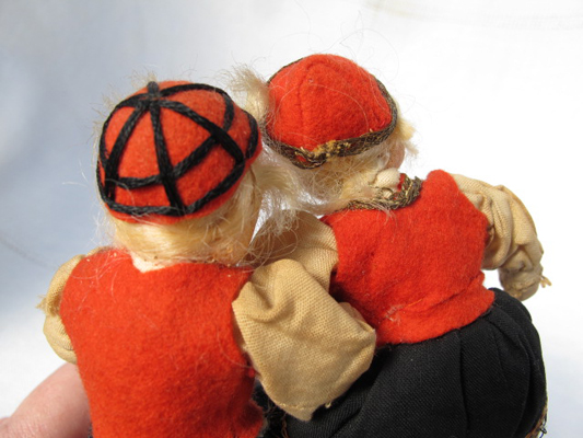 The original fabric relief is small (8 1/2″ square) and was enlarged to the printing size of 10″. Sometimes I want to have figures that are larger than wee folk size, so I have them blown up a bit. I made the original Jumping Joan as large as I could, using this technique (about 5″). The floss wrapped arms and legs don’t look right any bigger.