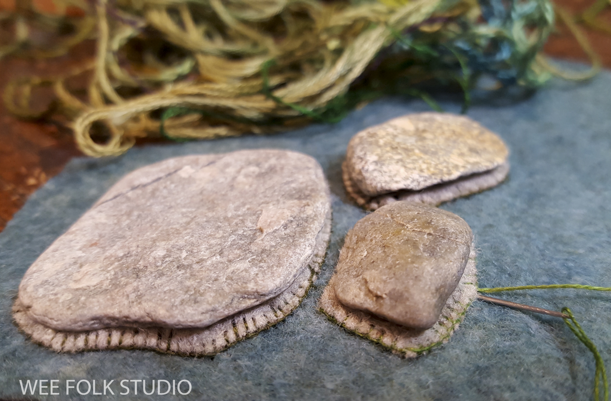 Since then, I’ve left out the felt and stitched directly onto the thread wrapped bodies. It’s fussy for sure, but the clothing comes out looking the way I want it to.