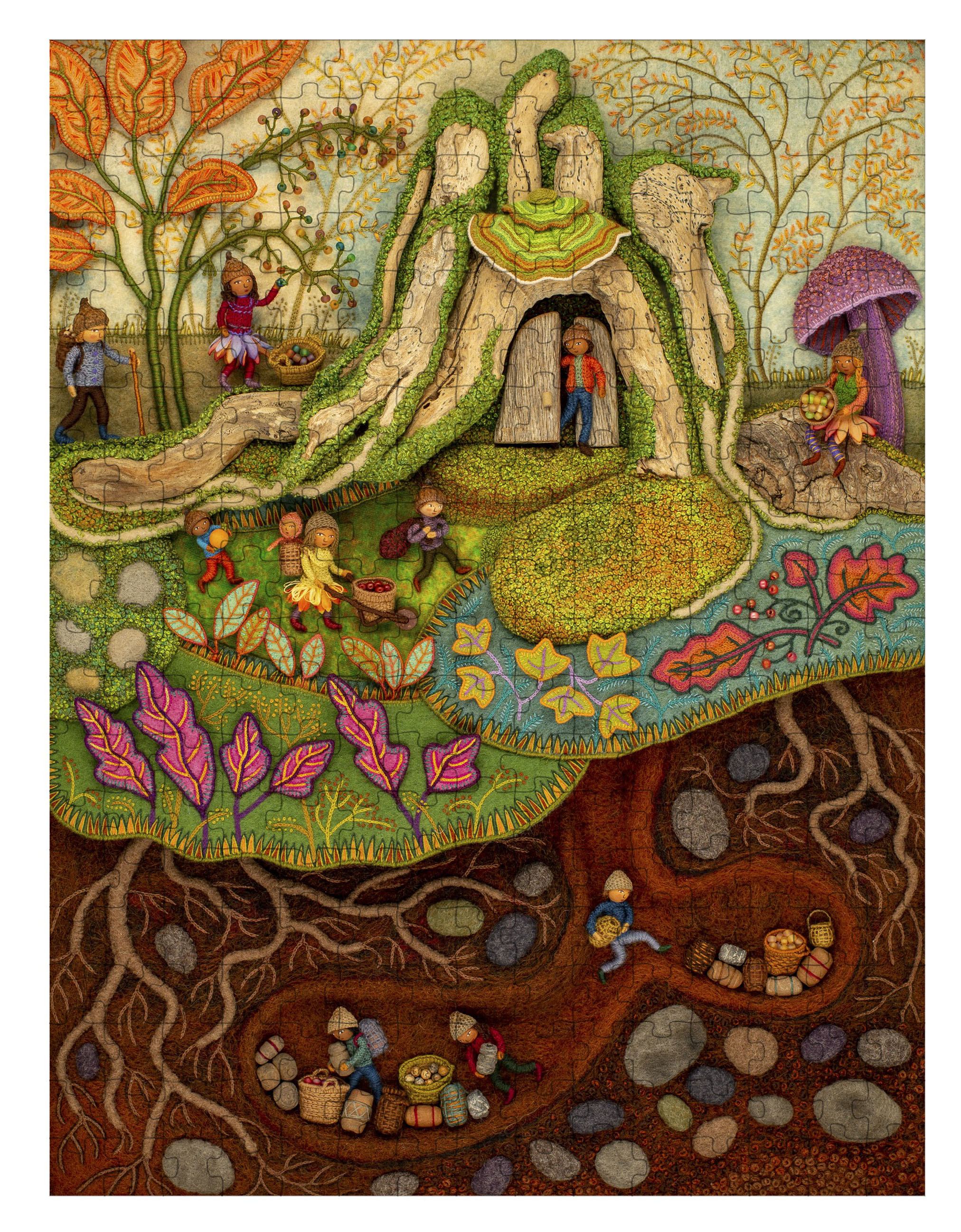 Harvest Time is the fall scene in a series of seasonal landscapes that capture the wonder and magic of the natural world, both real and imagined. Note cards and jigsaw puzzles of the this and other scenes in the series (Frosty Morning and Mossy Glen) are available in my Etsy Shop.