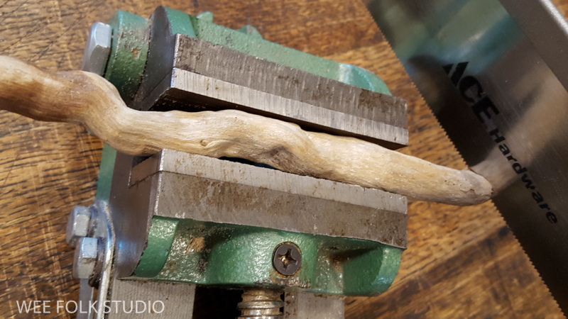 I looked through my driftwood collection and found the right sized stick that would work as a hanging bar. I braided cord to make a strap and drilled holes in the stick big enough to thread cord through.