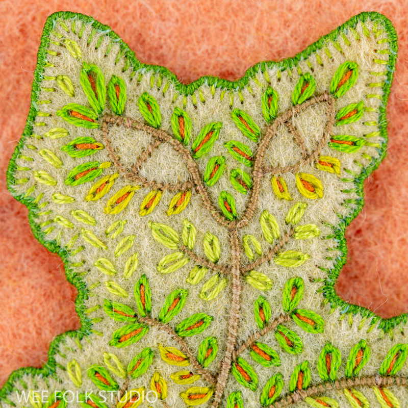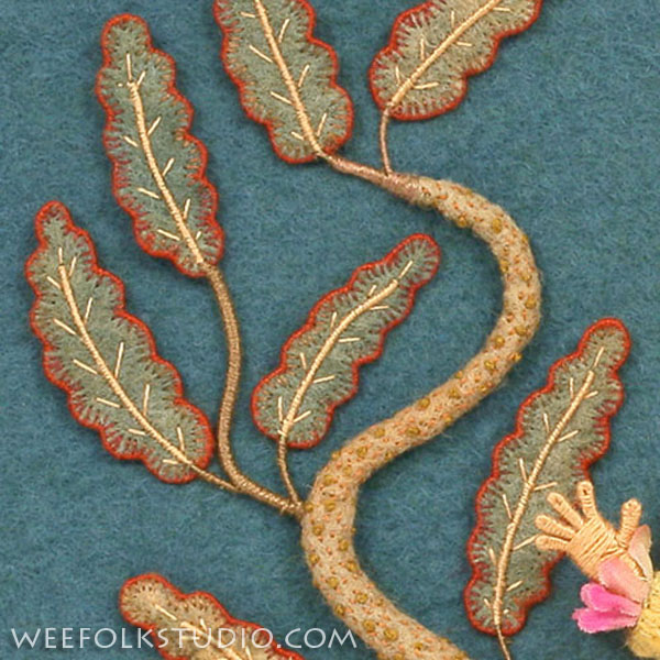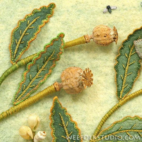 This is the first post in a series that will show what my artwork looks like Behind the Glass. I’ve had to accept that UV glass is a necessary barrier that protects my embroidery from dust, bugs, light, and probing fingers. But, since these loaned pieces were temporarily removed from their frames in preparation for my upcoming exhibition, I was able to get up close to take photos from different angles.
