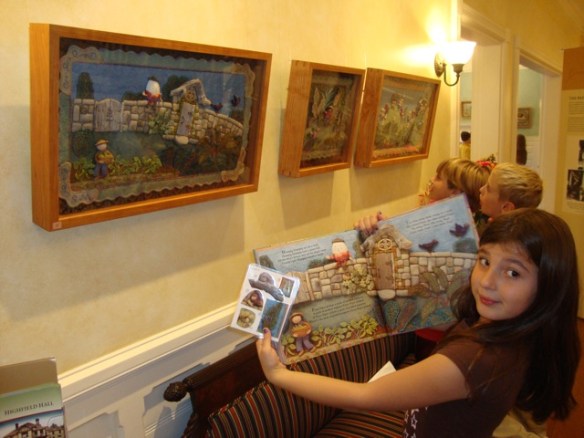 Luckily, many of the collectors who bought pieces in the early days live nearby, so it’s fairly easy to round up enough work to display. At this point, I should have 4 spreads from Mary Had a Little Lamb, the most that have been together for over 20 years.