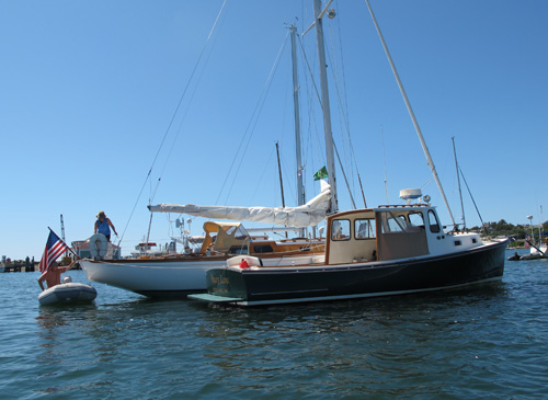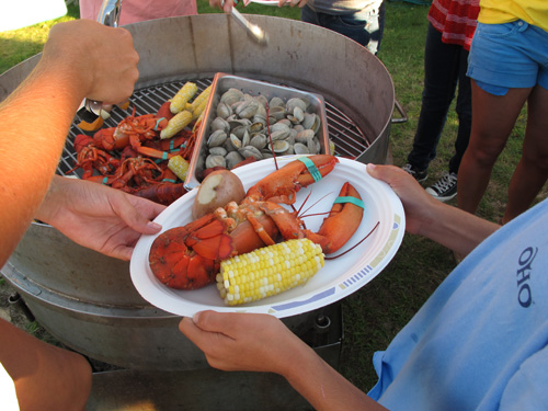 On a calm day earlier in August, before Irene blew up our way, my husband and I took our boat to Cuttyhunk Island. It’s only an hour ride from Woods Hole to this little gem at the end of the chain of Elizabeth Islands. In the harbor, we met up with our friends Ben and Julie and they rafted their sail boat up to our boat.