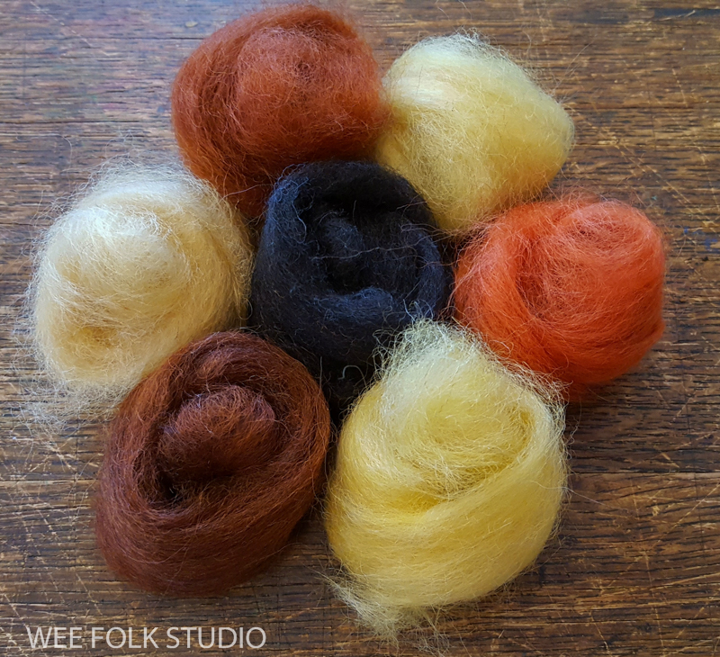 These fairies have a different hair material than I’ve used before. Instead of wool fleece, I used single ply, fingering weight Merino yarn, which is easy to braid. Unfortunately, Flying Finn Yarns, the small cottage industry I bought it from, is not currently in business.